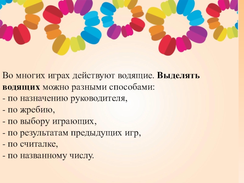 Во многих играх действуют водящие. Выделять водящих можно разными способами: