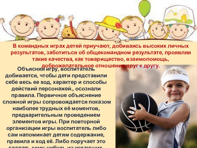 Проявление высоких физических и морально-волевых качеств более всего способствует участие детей в п\и, в которых общий результат зависит от взаимодействия играющих.