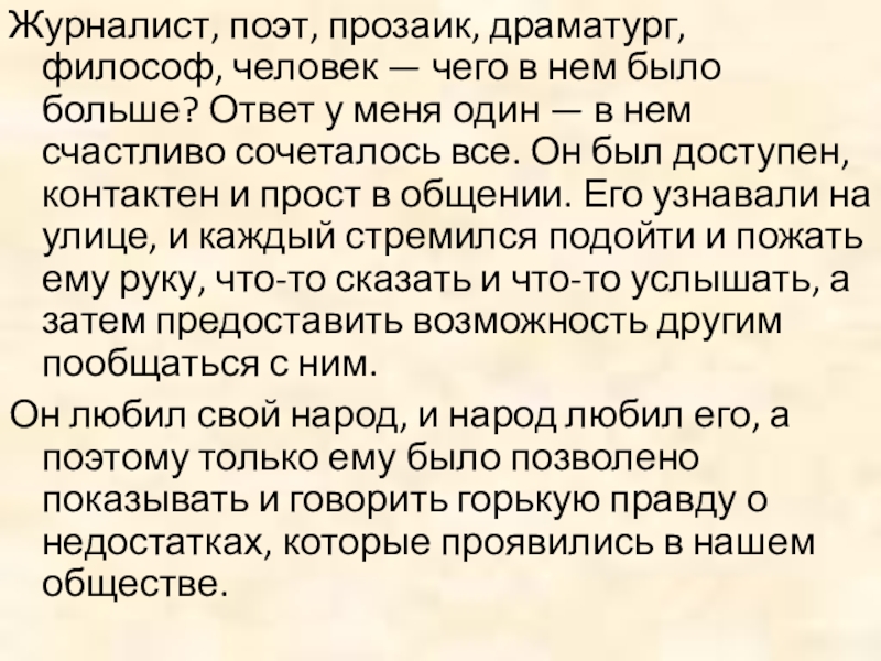 Это сайт презентаций, где можно хранить и обмениваться своими презентациями, докладами, проектами, шаблонами в формате PowerPoint с другими пользователями. Мы помогаем школьникам, студентам, учителям, преподавателям хранить и обмениваться учебными материалами.