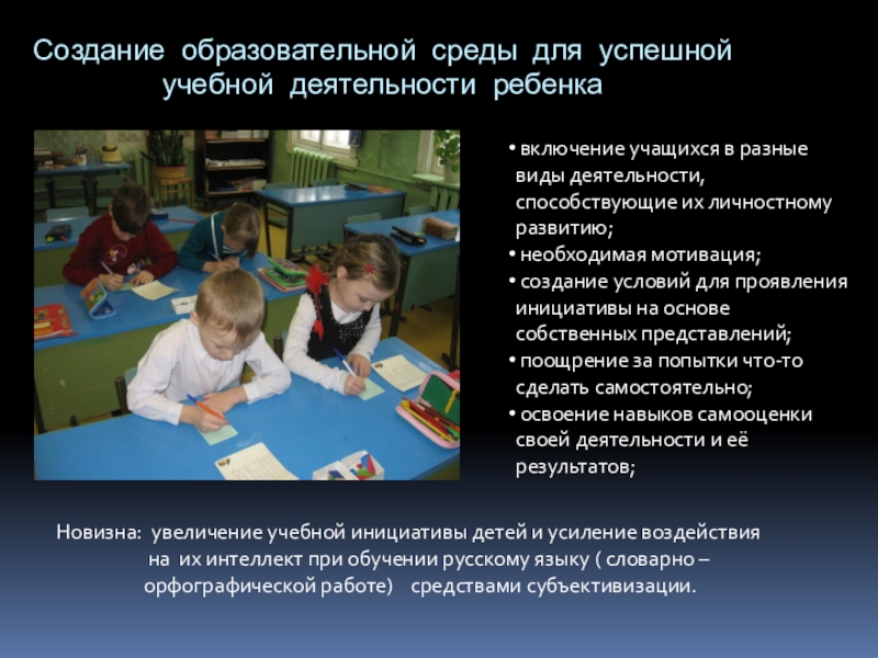 Новизна: увеличение учебной инициативы детей и усиление воздействия