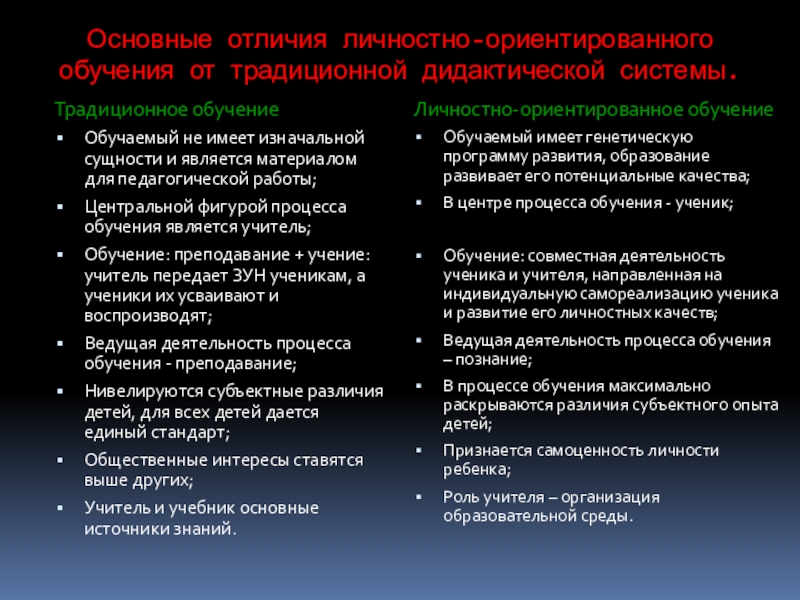 Обучение: совместная деятельность ученика и учителя, направленная на индивидуальную самореализацию ученика и развитие его личностных качеств;