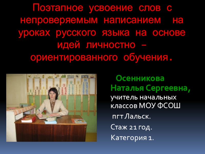 Осенникова Наталья Сергеевна, учитель начальных классов МОУ ФСОШ