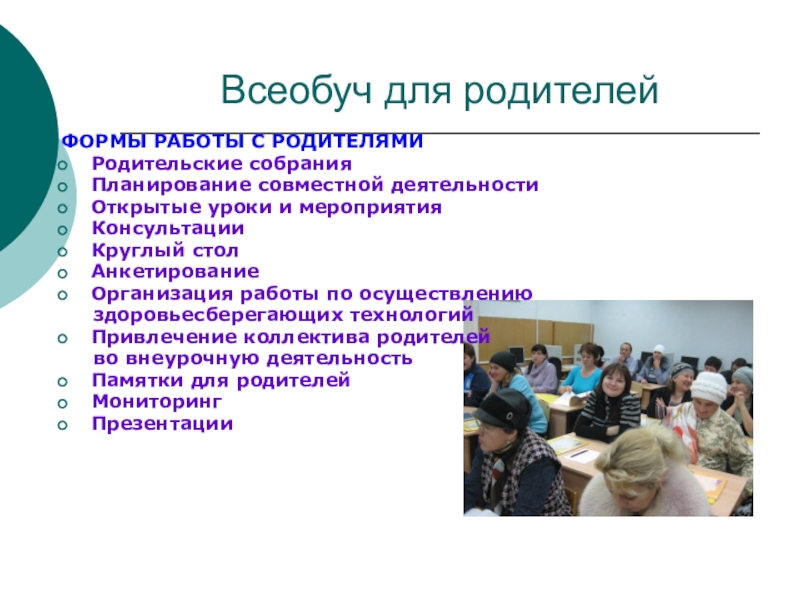 Слайд 19Всеобуч для родителей