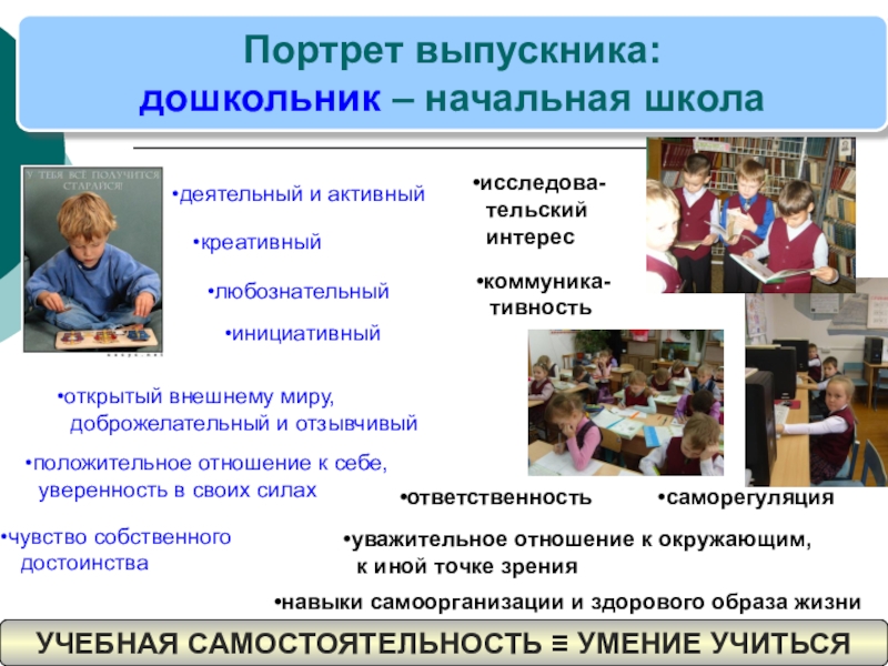 готовый самостоятельно действовать и отвечать перед семьёй и школой