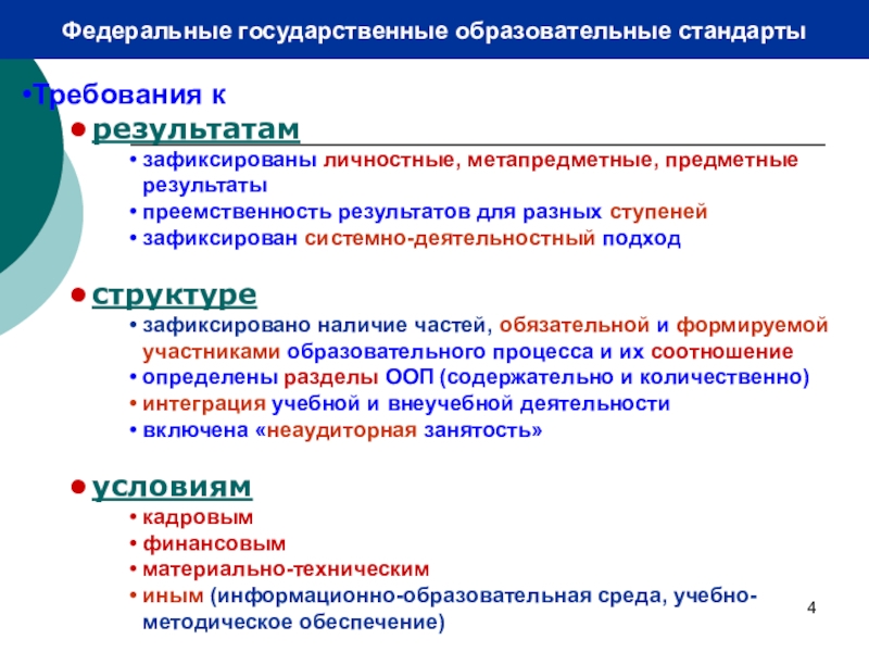 Слайд 4Федеральные государственные образовательные стандарты