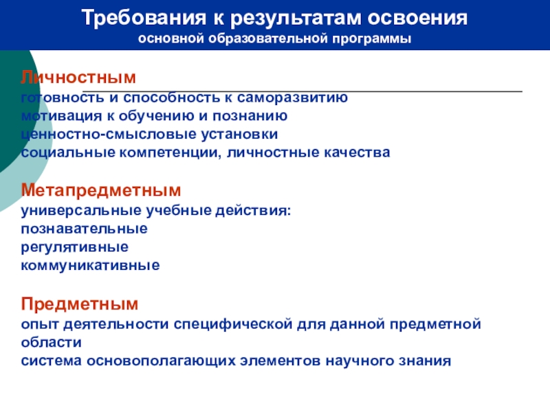 Требования к результатам освоения