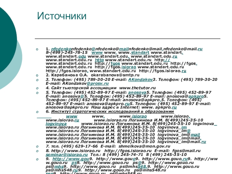 8. http://www.isiorao.ru http://fgos.isiorao.ru E-mail: fgos@mail.ru seminar@isiorao.ru Тел.: 8 (499) 245-74-71 8 (499) 245-35-10