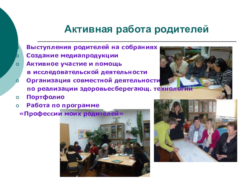 Слайд 20Активная работа родителей