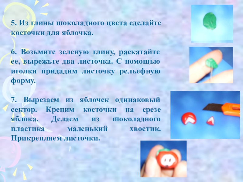 3. Возьмите небольшой кусочек красного пластика. Разделите красную пластику на 2 равные части. Каждую часть красной глины разомните в руках, что бы она стала плоской.