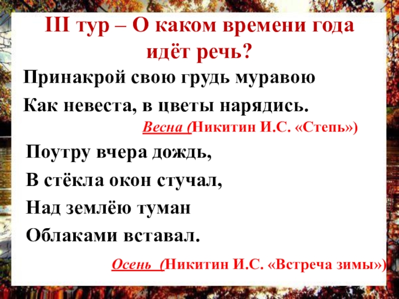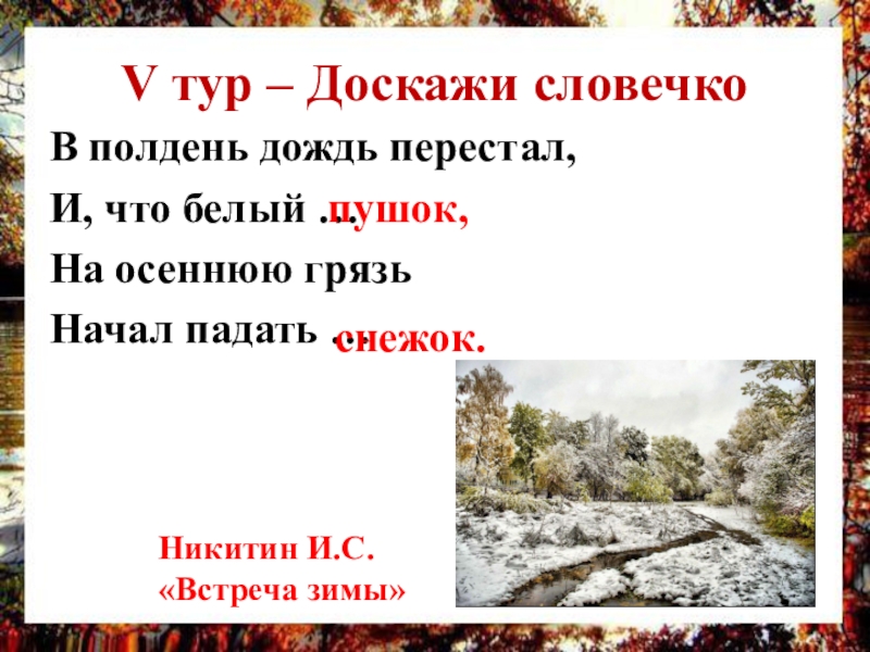 4. Автор стихотворения «Встреча зимы» Никитин И.С.?
