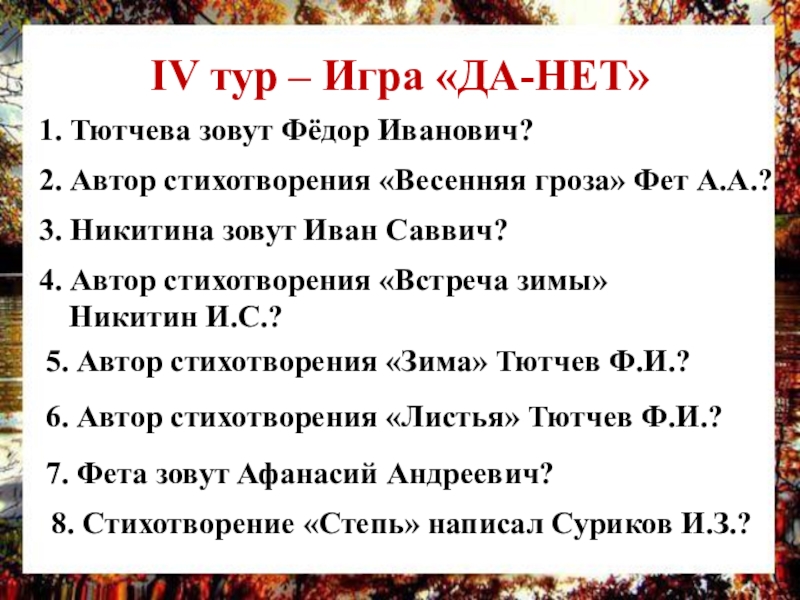 6. Автор стихотворения «Листья» Тютчев Ф.И.?