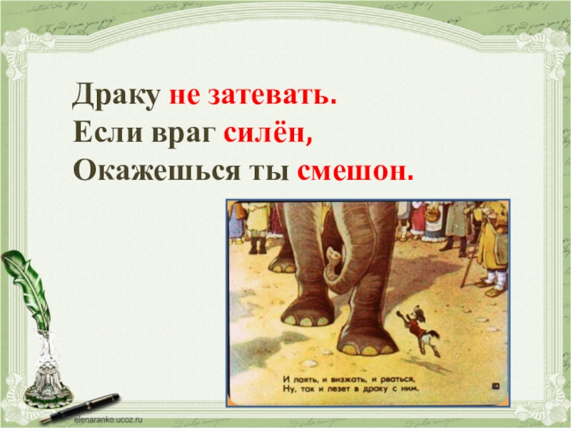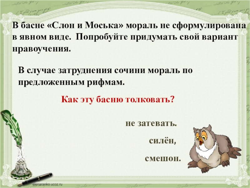 В случае затруднения сочини мораль по предложенным рифмам.