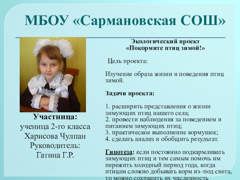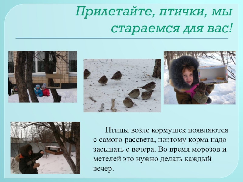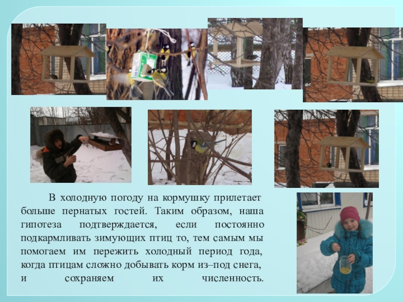 Гипотеза: если постоянно подкармливать зимующих птиц и тем самым помочь им пережить холодный период года, когда птицам сложно добывать корм из–под снега, то можно сохранить их численность