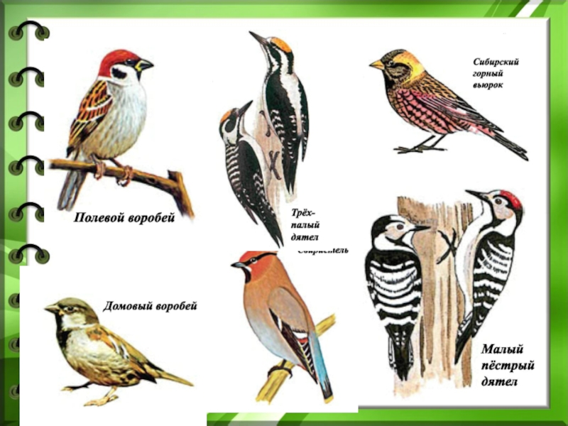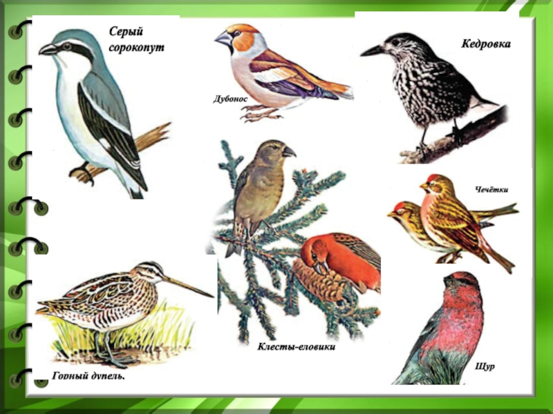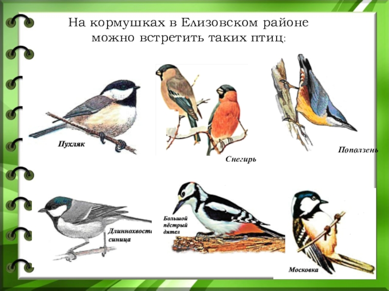 Слайд 35На кормушках в Елизовском районе можно встретить таких птиц: