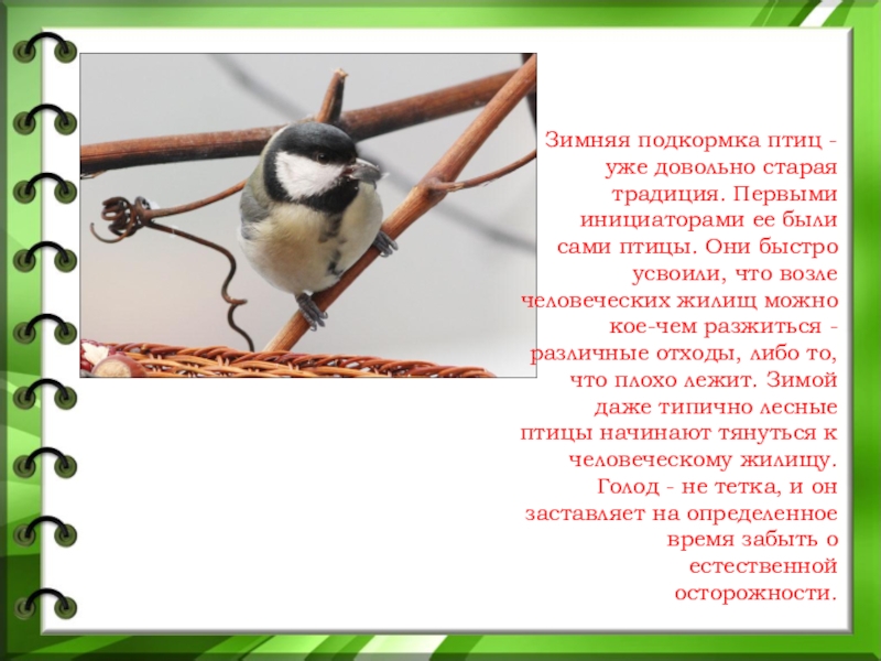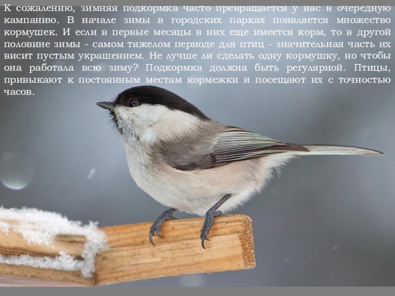 Слайд 6Зимняя подкормка птиц - уже довольно старая традиция. Первыми инициаторами ее