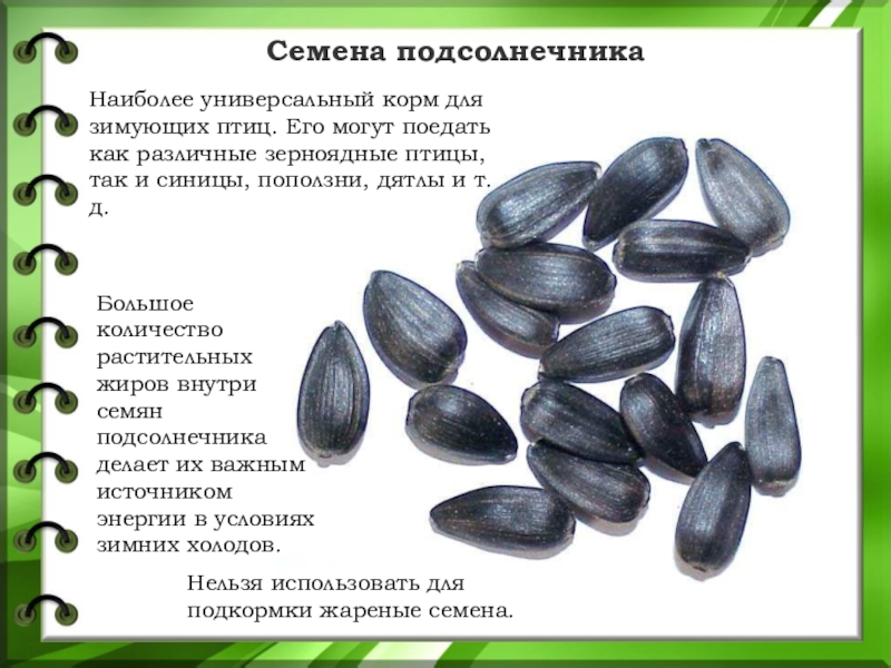 Нельзя использовать для подкормки жареные семена.