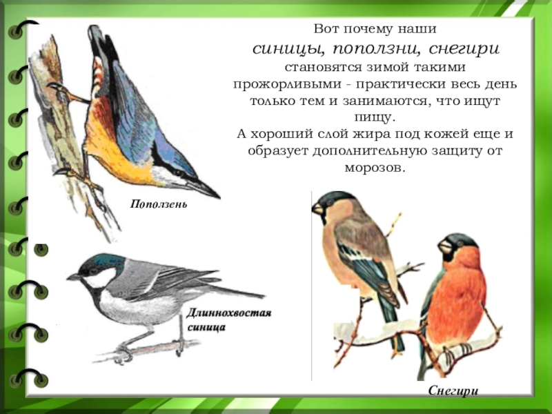 синицы, поползни, снегири становятся зимой такими прожорливыми -