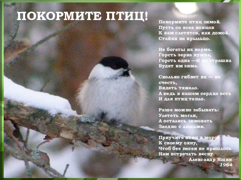 Слайд 1 Покормите птиц зимой.