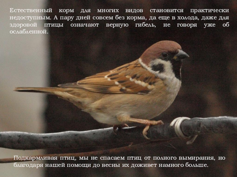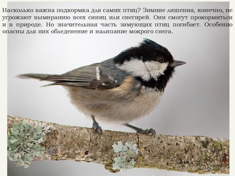 Слайд 16Насколько важна подкормка для самих птиц? Зимние лишения, конечно, не угрожают