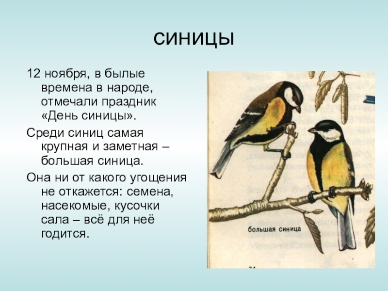 12 ноября, в былые времена в народе, отмечали праздник «День синицы».