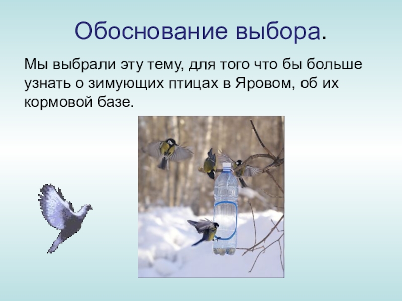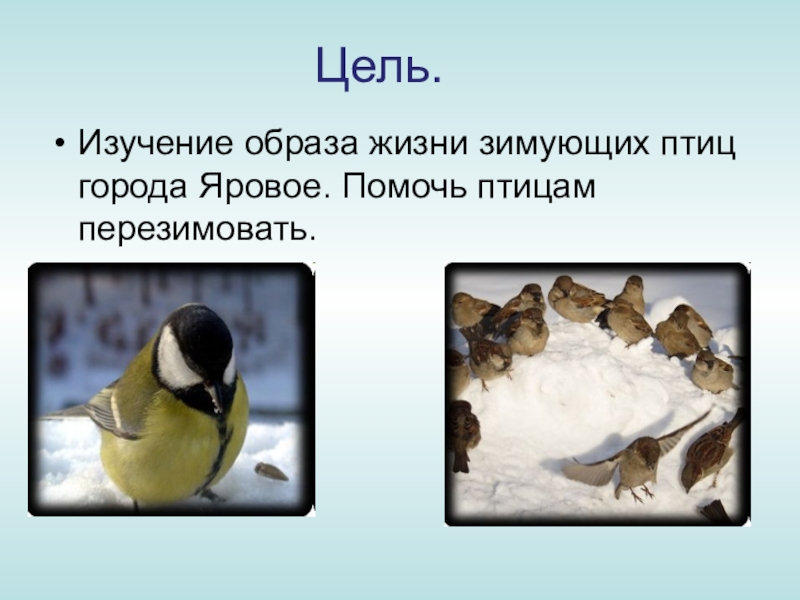 Изучение образа жизни зимующих птиц города Яровое. Помочь птицам перезимовать.