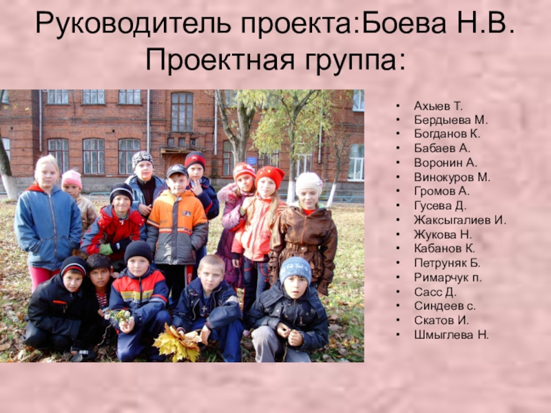 Слайд 17Руководитель проекта:Боева Н.В. Проектная группа: