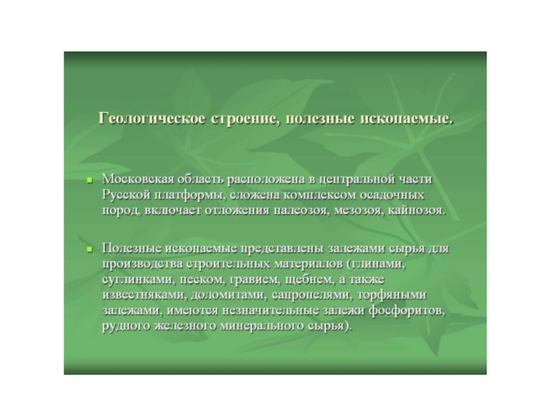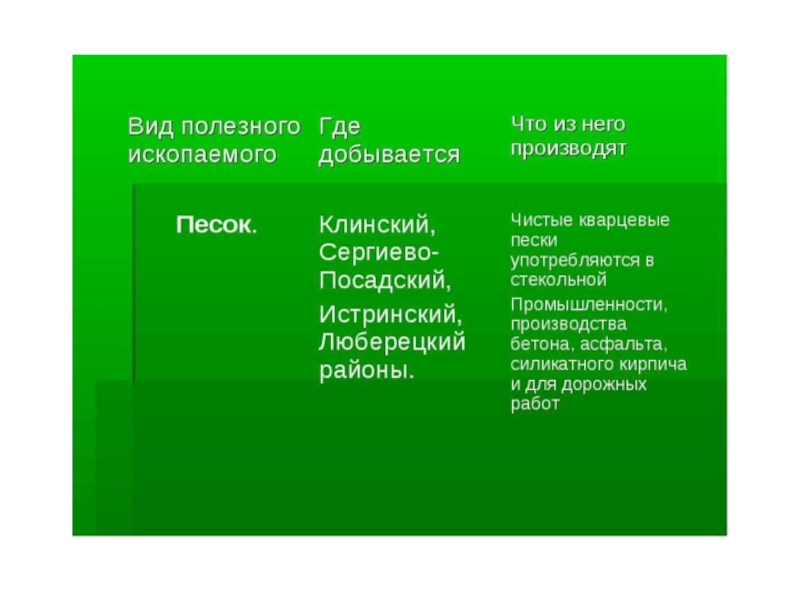 Презентация, доклад ПОЛЕЗНЫЕ ИСКОПАЕМЫЕ МОСКОВСКОЙ ОБЛАСТИ