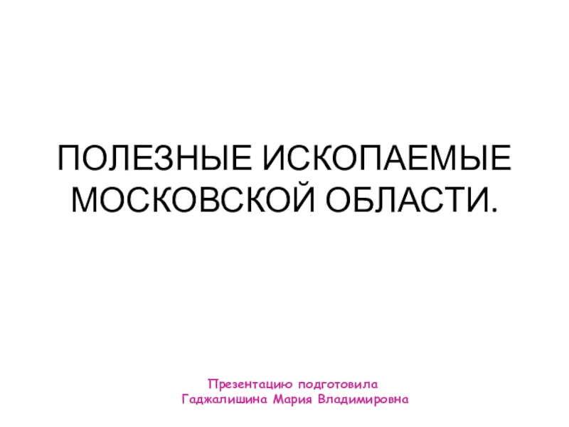 ПОЛЕЗНЫЕ ИСКОПАЕМЫЕ МОСКОВСКОЙ ОБЛАСТИ.Презентацию подготовила Гаджалишина Мария Владимировна