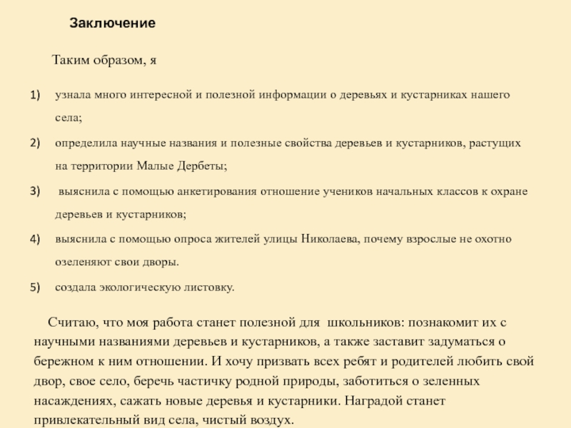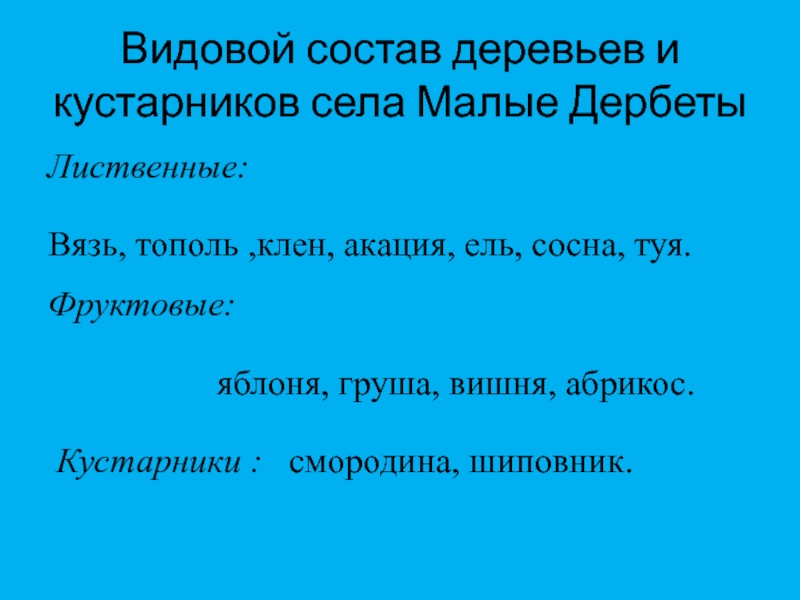 2. Изучение видового состава деревьв и кустарников села Малые Дербеты.