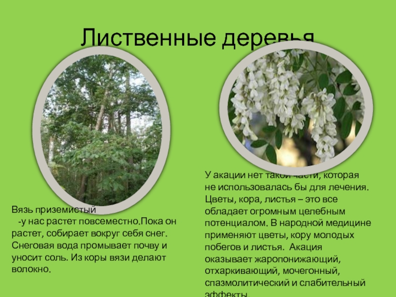 -у нас растет повсеместно.Пока он растет, собирает вокруг себя снег. Снеговая вода промывает почву и уносит соль. Из коры вязи делают волокно.