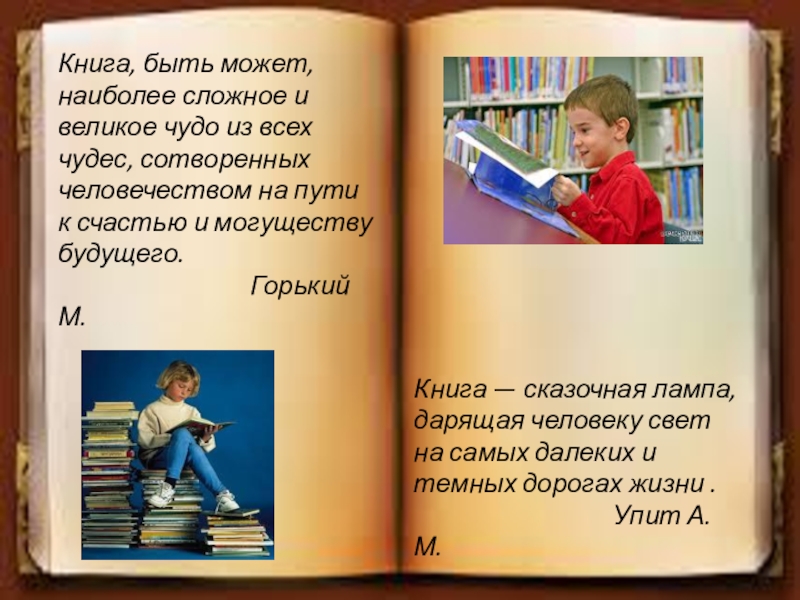 Книга — сказочная лампа, дарящая человеку свет на самых далеких и темных дорогах жизни .