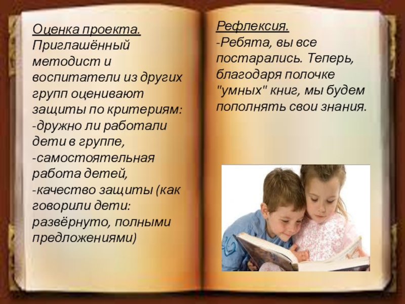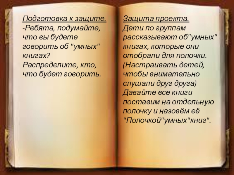 -Ребята, вы все постарались. Теперь, благодаря полочке "умных" книг, мы будем пополнять свои знания.