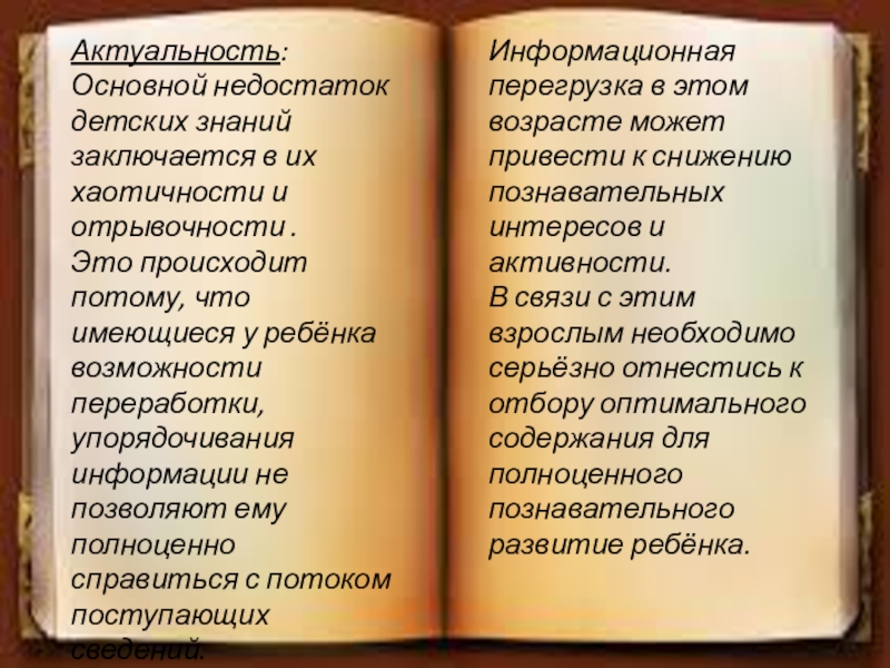 В связи с этим взрослым необходимо серьёзно отнестись к отбору оптимального содержания для полноценного познавательного развитие ребёнка.