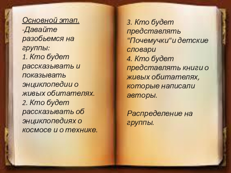 Дети по группам рассказывают об"умных" книгах, которые они отобрали для полочки. (Настраивать детей, чтобы внимательно слушали друг друга)