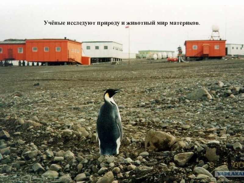 Слайд 42Учёные исследуют природу и животный мир материков.