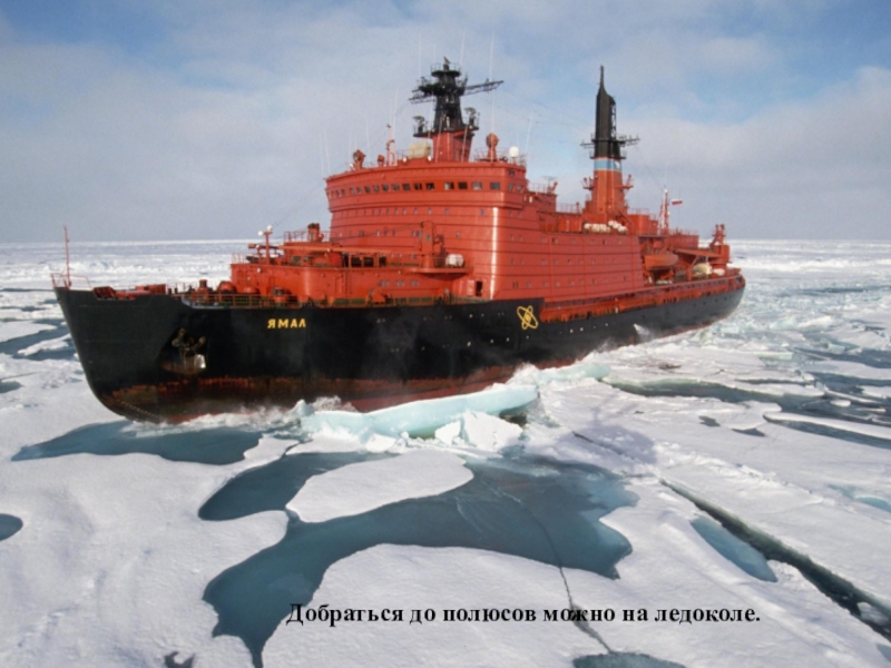 Слайд 21Добраться до полюсов можно на ледоколе.