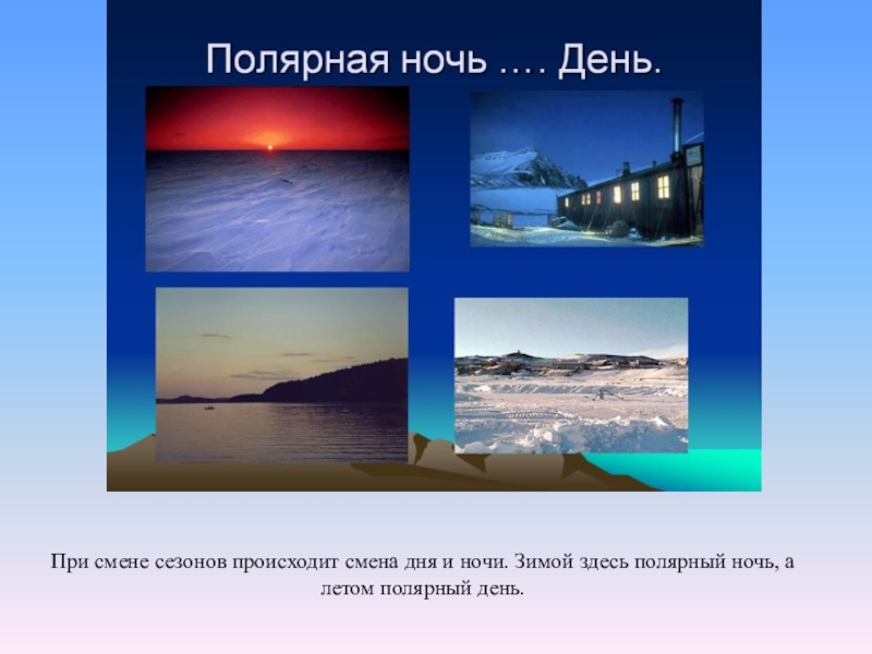 Слайд 6При смене сезонов происходит смена дня и ночи. Зимой здесь полярный