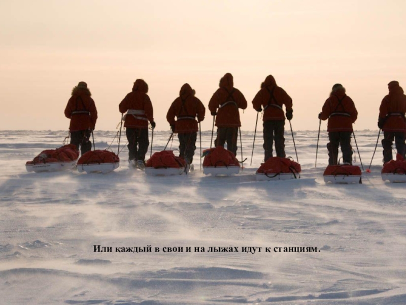 Слайд 27Или каждый в свои и на лыжах идут к станциям.