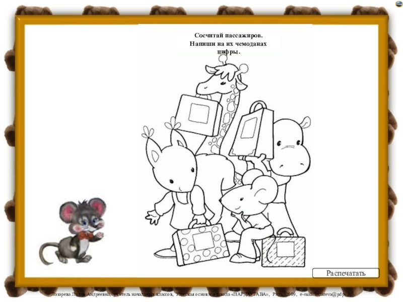 РаспечататьСосчитай пассажиров.Напиши на их чемоданах цифры.