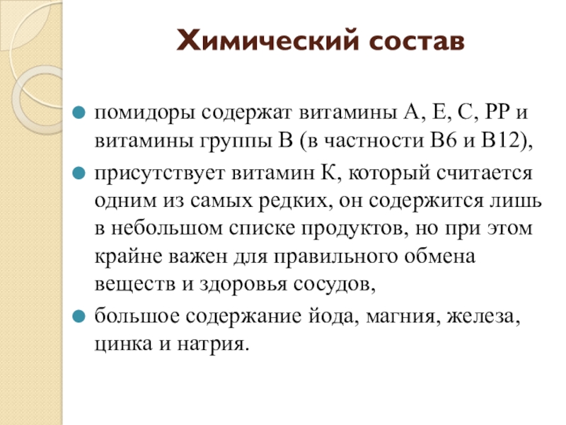 Плод помидора можно назвать сложным химическим