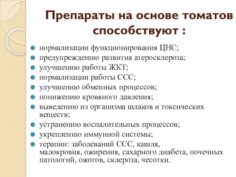 Слайд 25Препараты на основе томатов способствуют :