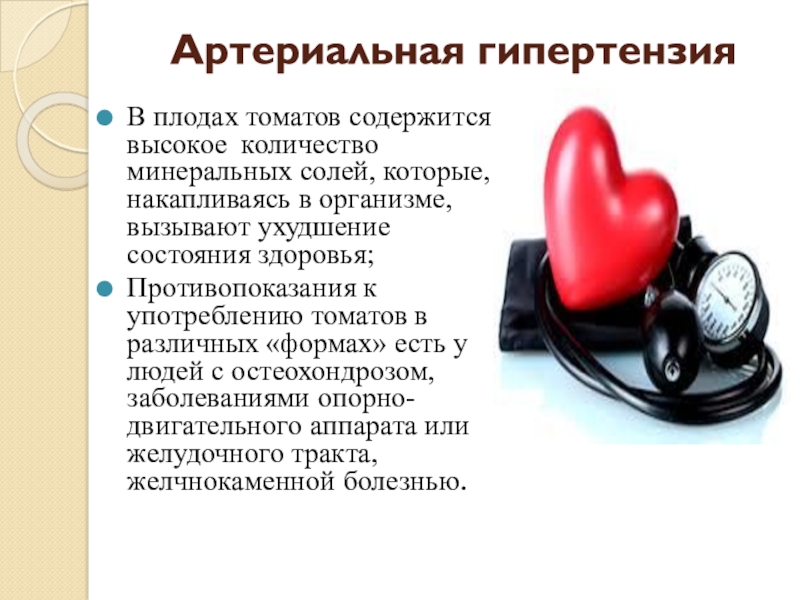 Противопоказания к употреблению томатов в различных «формах» есть у людей с остеохондрозом, заболеваниями опорно-двигательного аппарата или желудочного тракта, желчнокаменной болезнью.