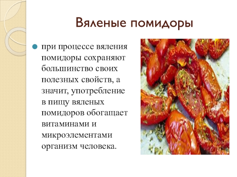 значит, употребление в пищу вяленых помидоров обогащает витаминами и микроэлементами организм человека.