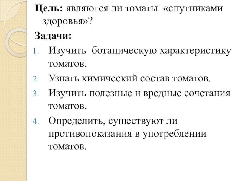 Слайд 3Цель: являются ли томаты «спутниками здоровья»?