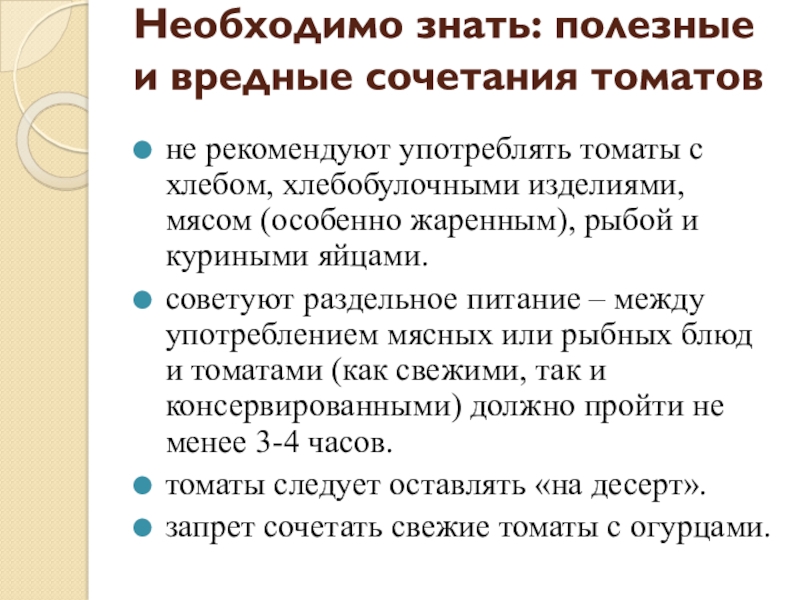 Слайд 20Необходимо знать: полезные и вредные сочетания томатов