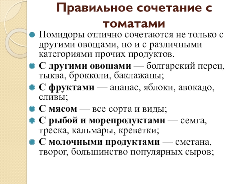 Слайд 21Правильное сочетание с томатами