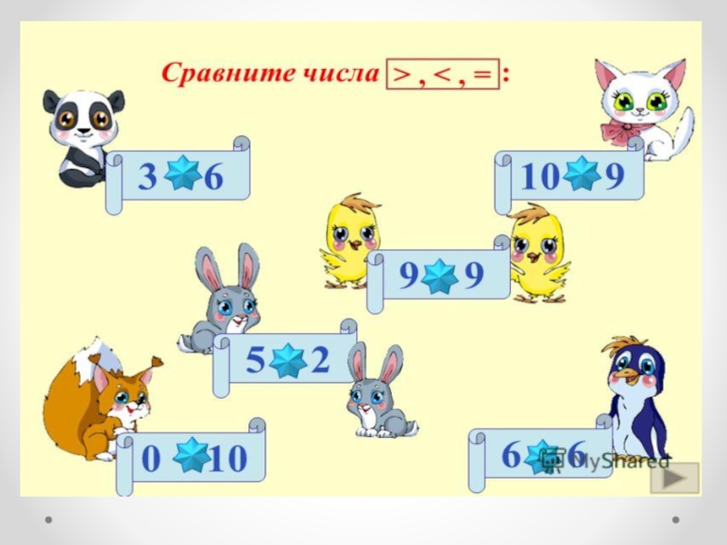 - Решать задачи в 1 действие, раскрывающие конкретный смысл действий сложения и вычитания, а также задачи на нахождение числа, которое на несколько единиц больше (меньше) данного и