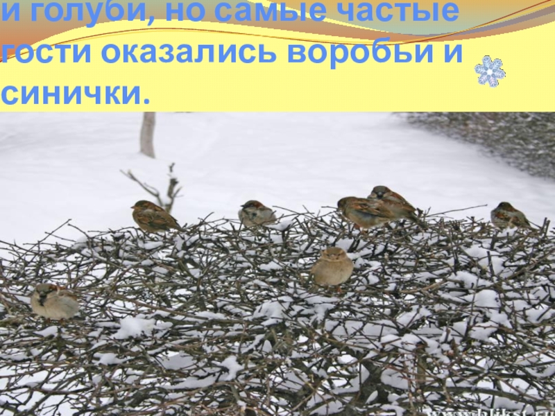 Слайд 14 К нам в кормушку прилетали и голуби, но самые частые гости