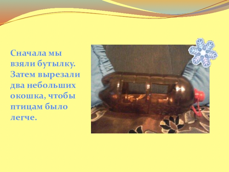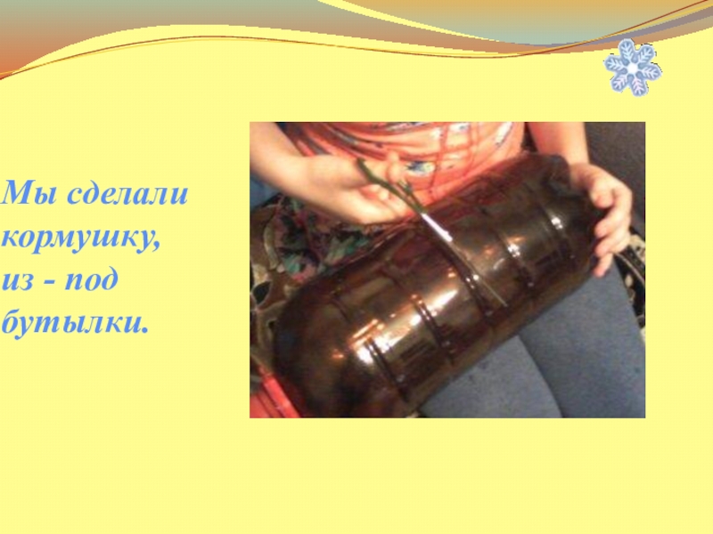 Мы сделали кормушку, из - под бутылки.