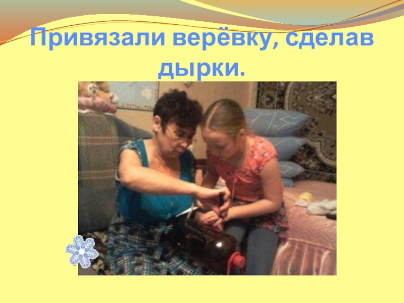 Слайд 8Привязали верёвку, сделав дырки.